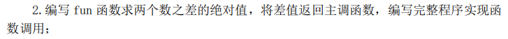 printf("The absolute value of the difference between the two numbers is %f\n",Fun(x,y));