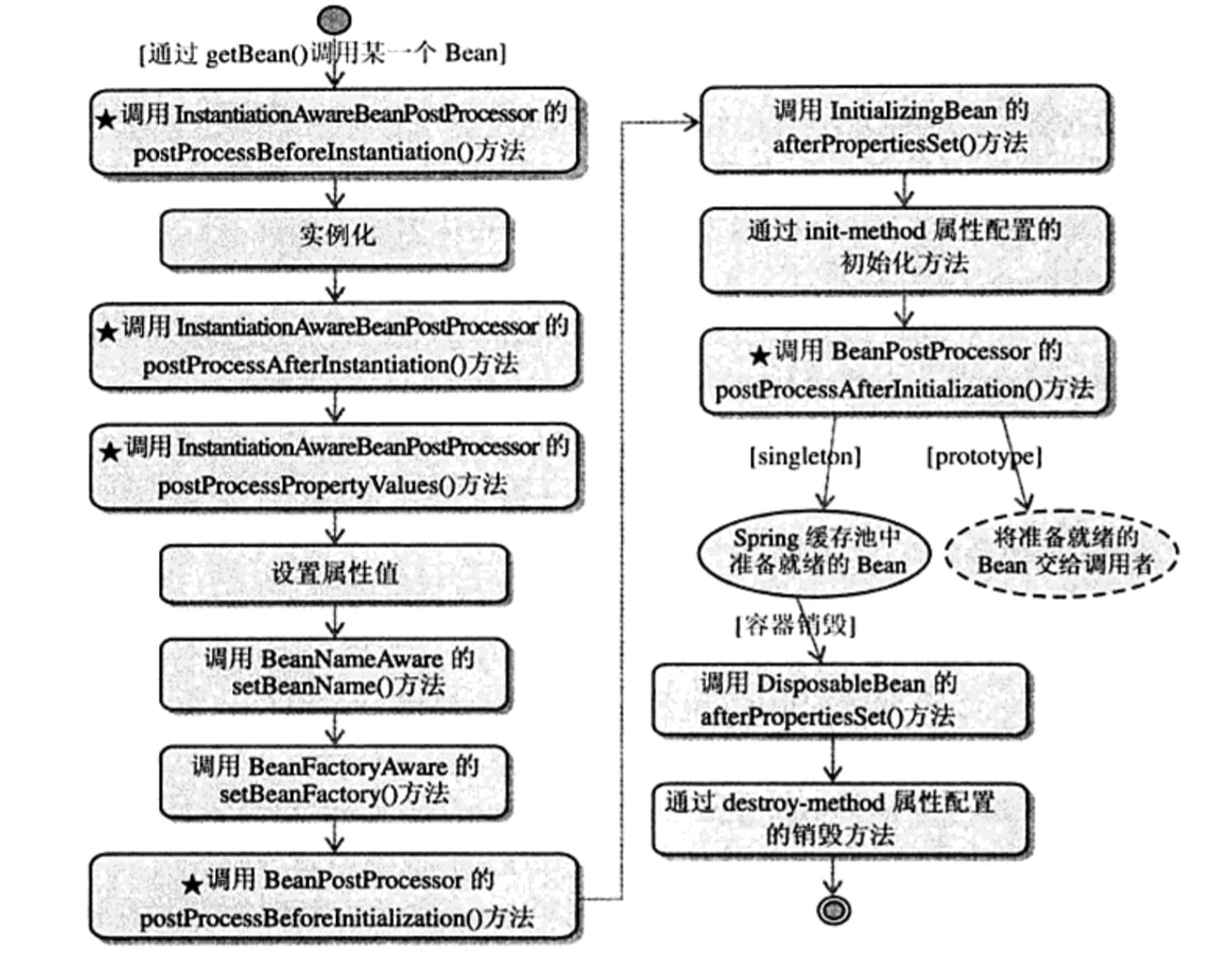 可以看到 bean 的加载是相当复杂的。加载的步骤大致如下: