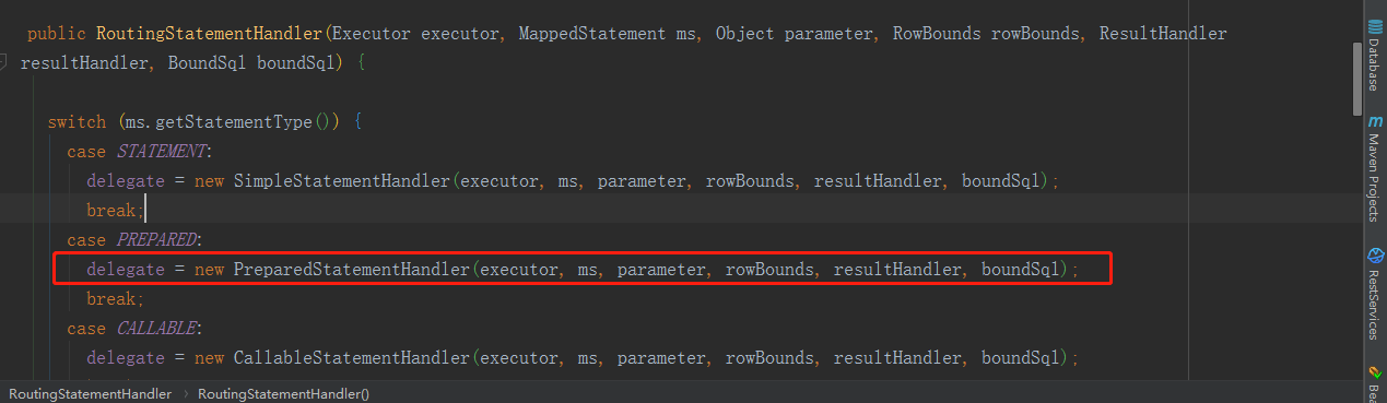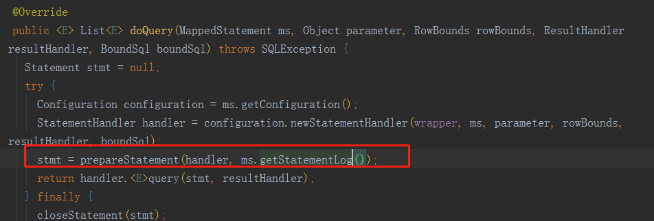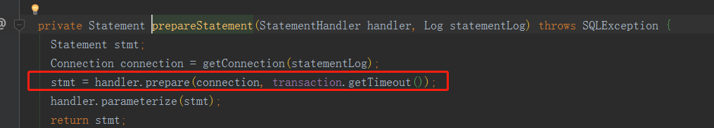 执行的是StatementHandler代理对象的prepare 方法