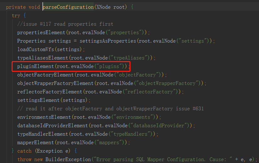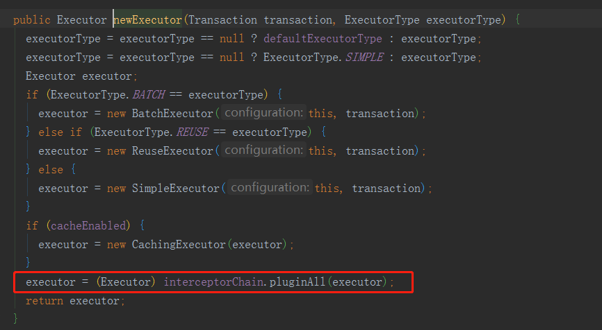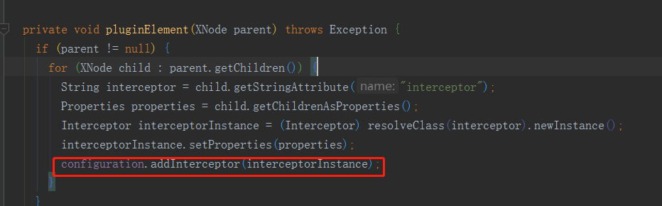 再解析mybatis.xml配置文件时 会解析plugins 标签 把所有plugin标签配置的interceptor值都解析出来并实例化放到configuration对象里