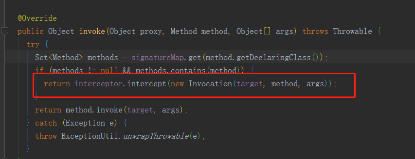 public Object intercept(Invocation invocation) throws Throwable {