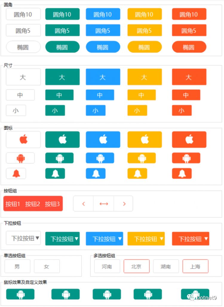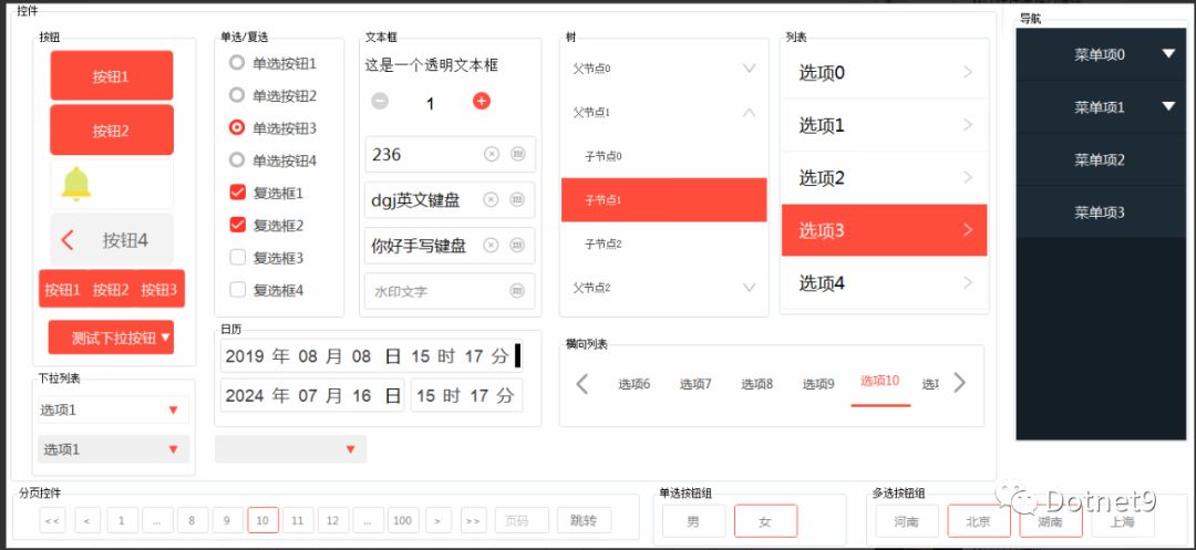 包含常规的文本框、水印文字、数字框、输入验证、表单验证、下拉框、时间选择框、滑块、文字提示、面板等。