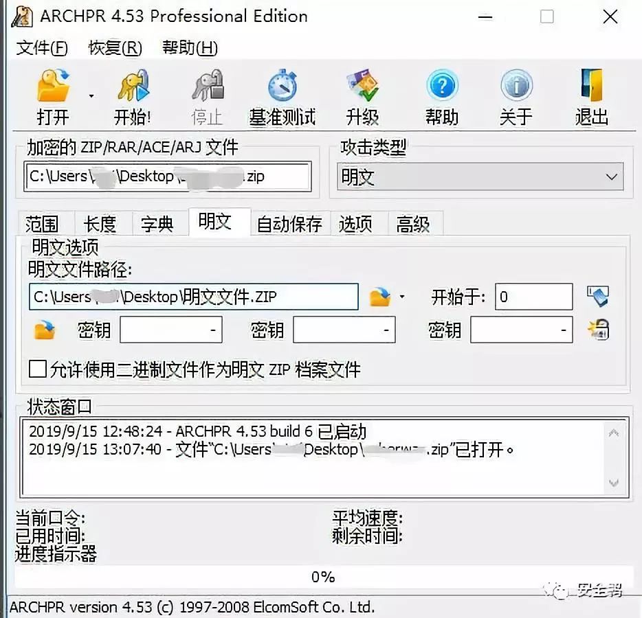 将此文件作为明文文件解压,尝试使用ARCHPR工具进行明文攻击: