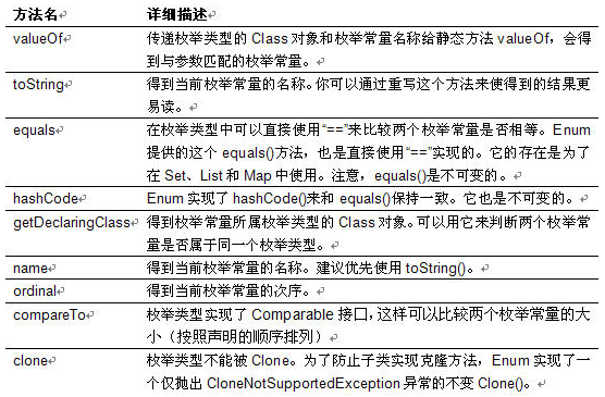 valueOf(String str):可以把一个字符串转为对应的枚举类对象。要求字符串必须是枚举类对象的“名字”。如不是,会有运行时异常。