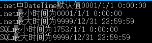 6 Console.WriteLine(".net中DateTime默认值{0}", t);