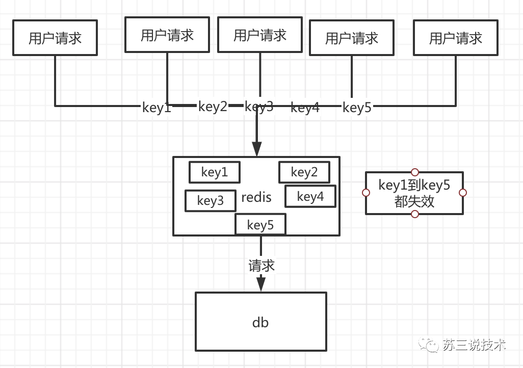 再问一下:如果大量的请求访问多个key,刚好key同时失效了会怎么样?