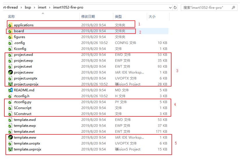由于 i.MX RT 系列下载时需要特定的算法,为了方便程序的下载,对应 BSP 的下载算法文件也会放在 board 文件夹下面。