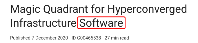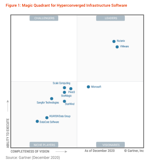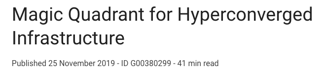 12月7日,Gartner发布了2020年超融合(HCI)软件的魔力象限,这个是Gartner第一个HCI软件的魔力象限。