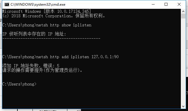 如果不用管理员运行cmd,会得到错误信息: