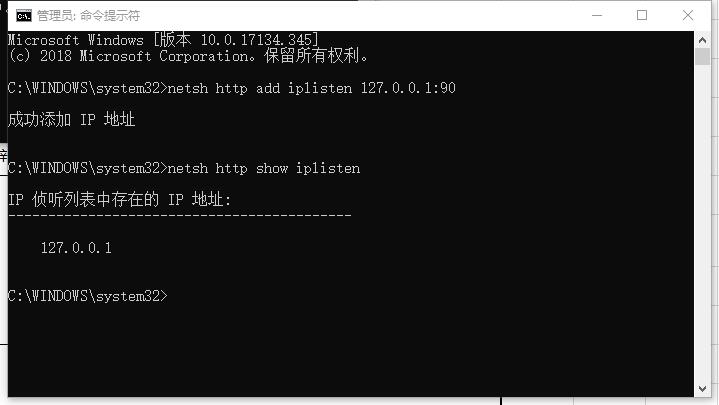 如果成功添加了http.sys侦听的IP地址,会显示: