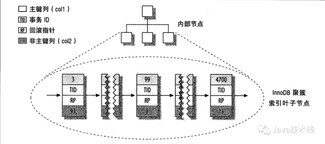 下图是聚簇索引的数据组织方式。col1为主键索引的聚簇索引树
