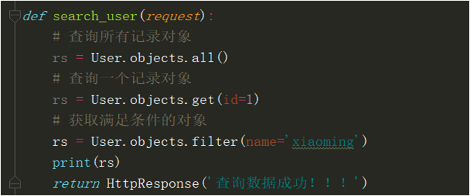 2.在视图函数中导入User模型类,实现简单的查找