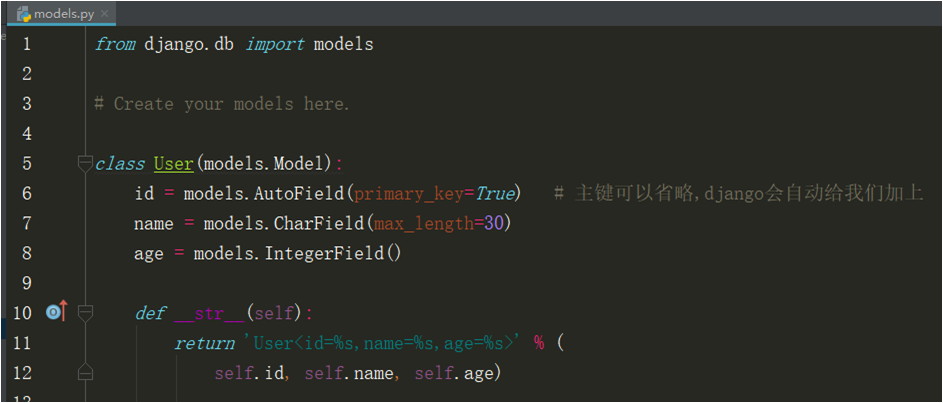 1.在app下面的models.py中创建django的模型类.