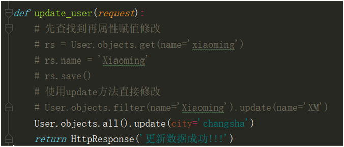3.在视图函数中导入User模型类,然后使用下面的方法更新数据