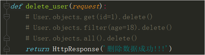 4.在视图函数中导入User模型类,然后使用下面的方法删除数据