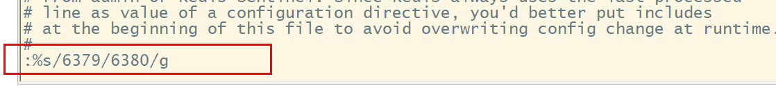 拷贝上面的配置文件,分别命名为redis_6379.conf、redis_6380.conf,、vi修改redis_6380.conf文件,将6379替换为6380,命令为:%s/6379/6380/g