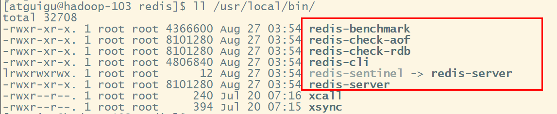 进入到redis-5.0.4目录,make & make install 即可执行编译和安装,安装后会在/usr/local/bin目录下生成命令文件
