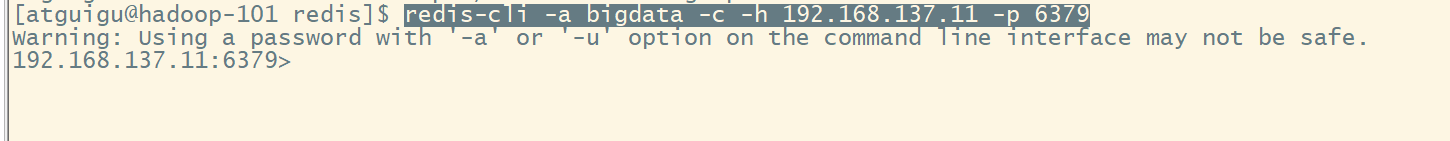 redis-cli -a bigdata -c -h 192.168.137.11 -p 6379