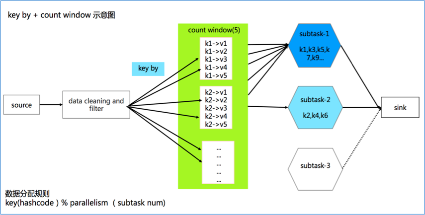,key group 会按照规则被分发到每个 task 上,代码示例如下: