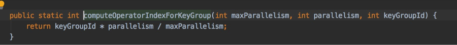 Flink 为了保证从 state 中恢复数据时产生最小的 IO,引入了 key group 的概念。Key group 数目等于最大并发数(max parallelism),取值范围是 128-32768。当做数据分发的时候,key 会按照规则被分发到 key group 里面,相关代码如下所示: