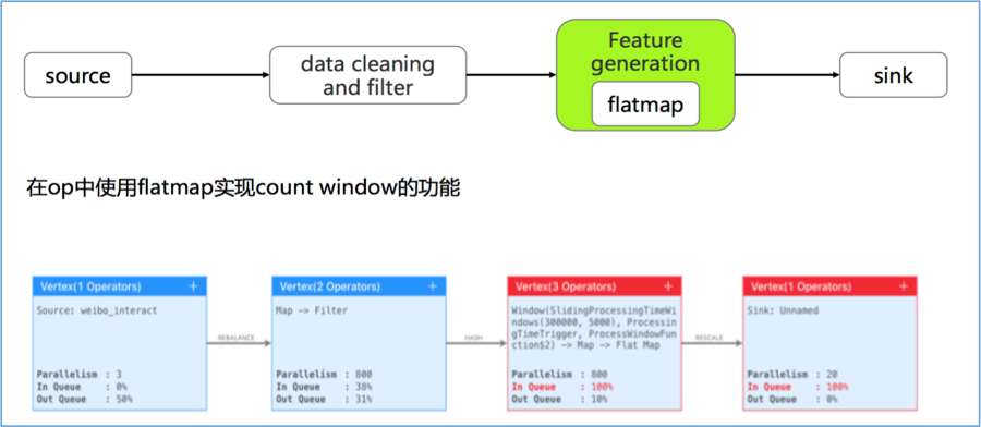 微博机器学习平台使用 Flink 实时处理用户行为日志和生成标签,并且在生成标签后写入存储系统。为了降低存储系统的 IO 负载,有批量写入的需求,同时对数据延迟也需要进行一定的控制,因此需要一种有效的消息聚合处理方案。