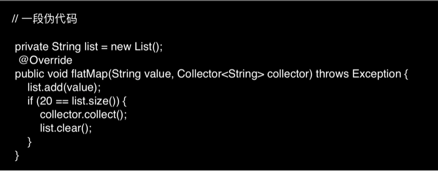 这是我们能够想到最直观的解决方案,即在自定义的 flatMap 方法中对消息进行聚合,伪代码如下:
