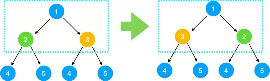 2.查找问题与子问题的关系,得出递推公式 我们之前说了,解题要采用自上而下的思考方式,那我们取前面的1, 2,3 结点来看,对于根节点 1 来说,假设 2, 3 结点下的节点都已经翻转,那么只要翻转 2, 3 节点即满足需求