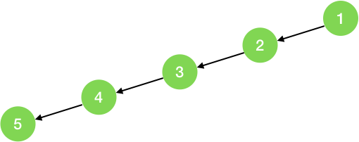 最坏情况,如果此二叉树是如图所示(只有左节点,没有右节点),则树的高度即结点的个数 n,此时空间复杂度为 O(n),总的来看,空间复杂度为O(n)