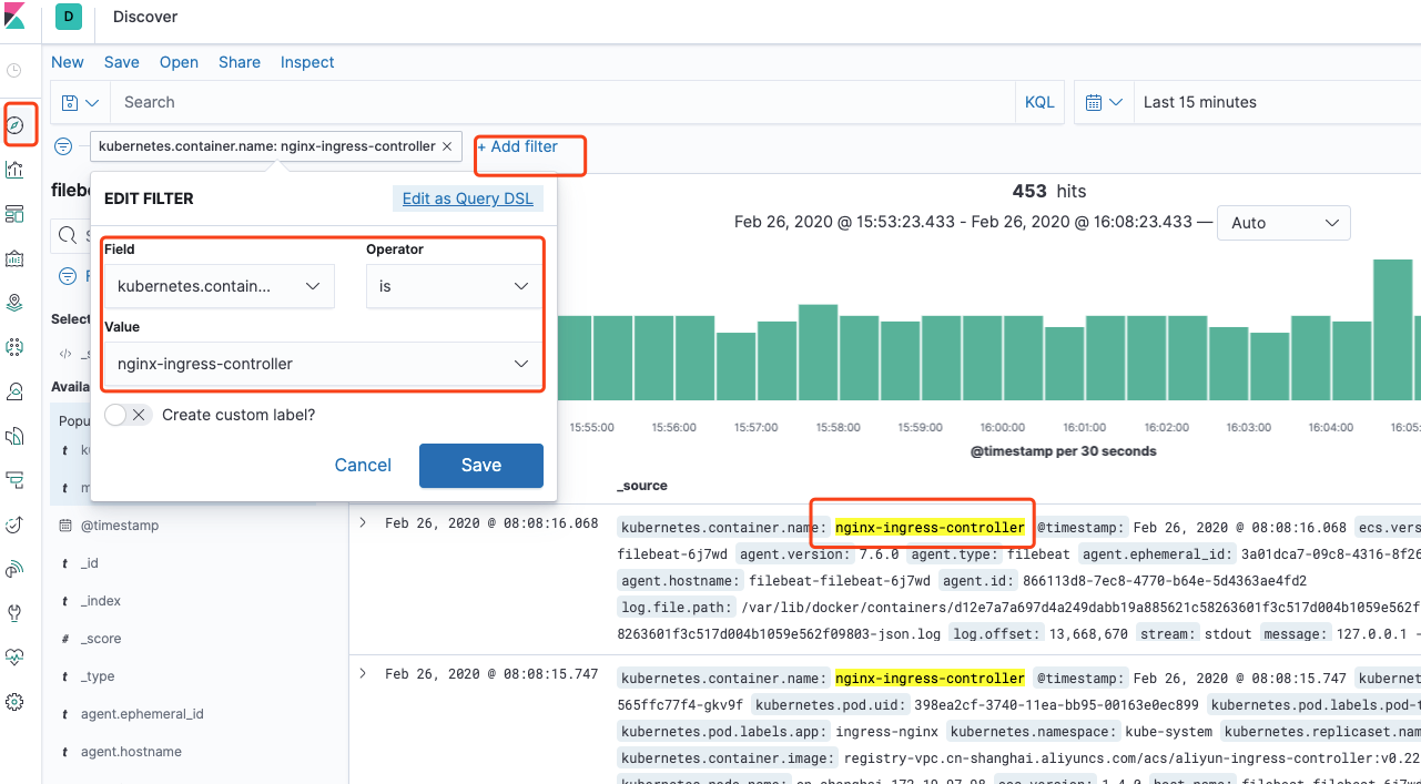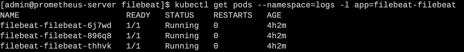 helm install filebeat -n logs ./filebeat
