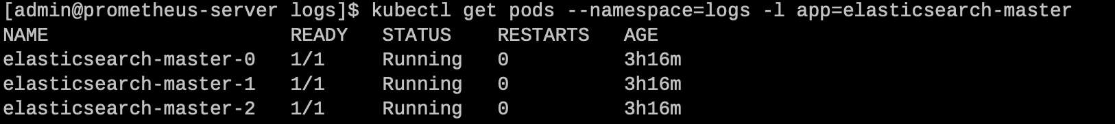 helm install elasticsearch -n logs ./elasticsearch