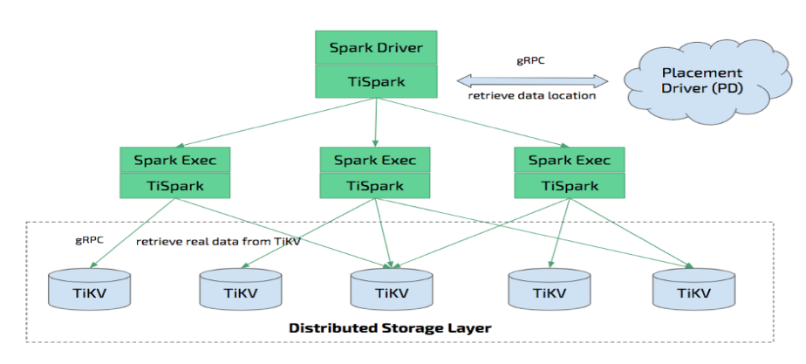 TiSpark深度整合了Spark Catalyst引擎,使得Spark能够高效的读取TiKV中存储的数据进行分布式计算。