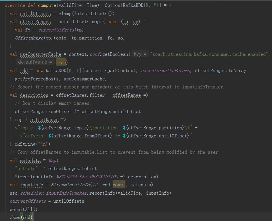下面我们详细分析DirectKafkaInputDStream的compute方法: