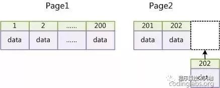 InnoDB使用聚集索引,数据记录本身被存于主索引(一颗B+Tree)的叶子节点上。这就要求同一个叶子节点内(大小为一个内存页或磁盘页)的各条数据记录按主键顺序存放,因此每当有一条新的记录插入时,MySQL会根据其主键将其插入适当的节点和位置,如果页面达到装载因子(InnoDB默认为15/16),则开辟一个新的页(节点)。如果表使用自增主键,那么每次插入新的记录,记录就会顺序添加到当前索引节点的后续位置,当一页写满,就会自动开辟一个新的页。如下: