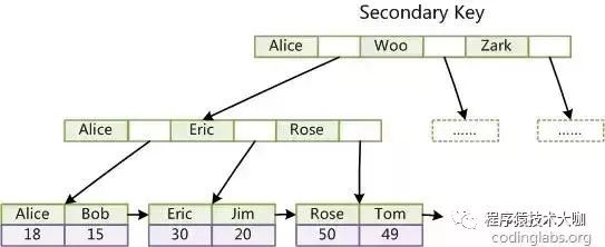 ② 当b+树的数据项是复合的数据结构,比如(name,age,sex)的时候,b+数是按照从左到右的顺序来建立搜索树的,比如当(张三,20,F)这样的数据来检索的时候,b+树会优先比较name来确定下一步的所搜方向,如果name相同再依次比较age和sex,最后得到检索的数据;但当(20,F)这样的没有name的数据来的时候,b+树就不知道下一步该查哪个节点,因为建立搜索树的时候name就是第一个比较因子,必须要先根据name来搜索才能知道下一步去哪里查询。
