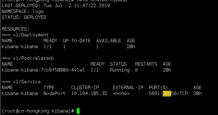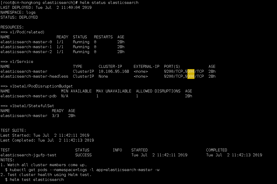 $ helm install -n elasticsearch --namespace=logs ./elasticsearch