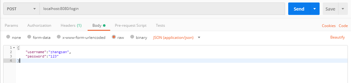 代码已经全部OK,启动项目,打开postman访问 localhost:8080/login,附一张postman的请求截图:
