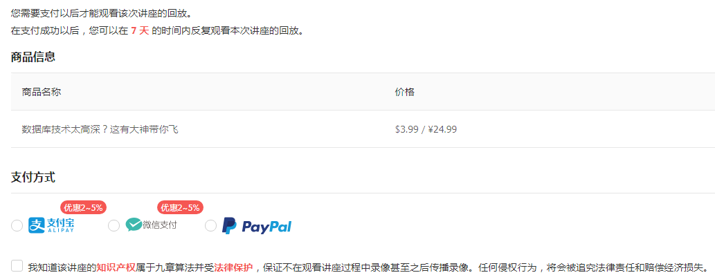 讲座价格:$9.99 / ¥59.99