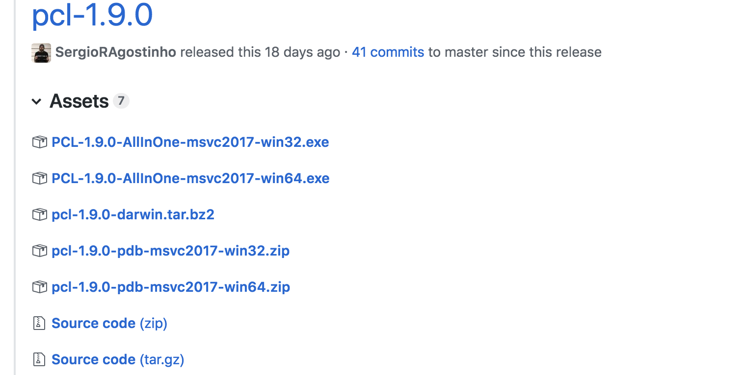 师兄:PCL在Linux下安装有两种方式,一种是安装编译好的库,一种是从源码编译。你看这个是PCL GitHub上的安装包,前面几种是不同环境下的编译好的库了,最后的source code就是源码安装