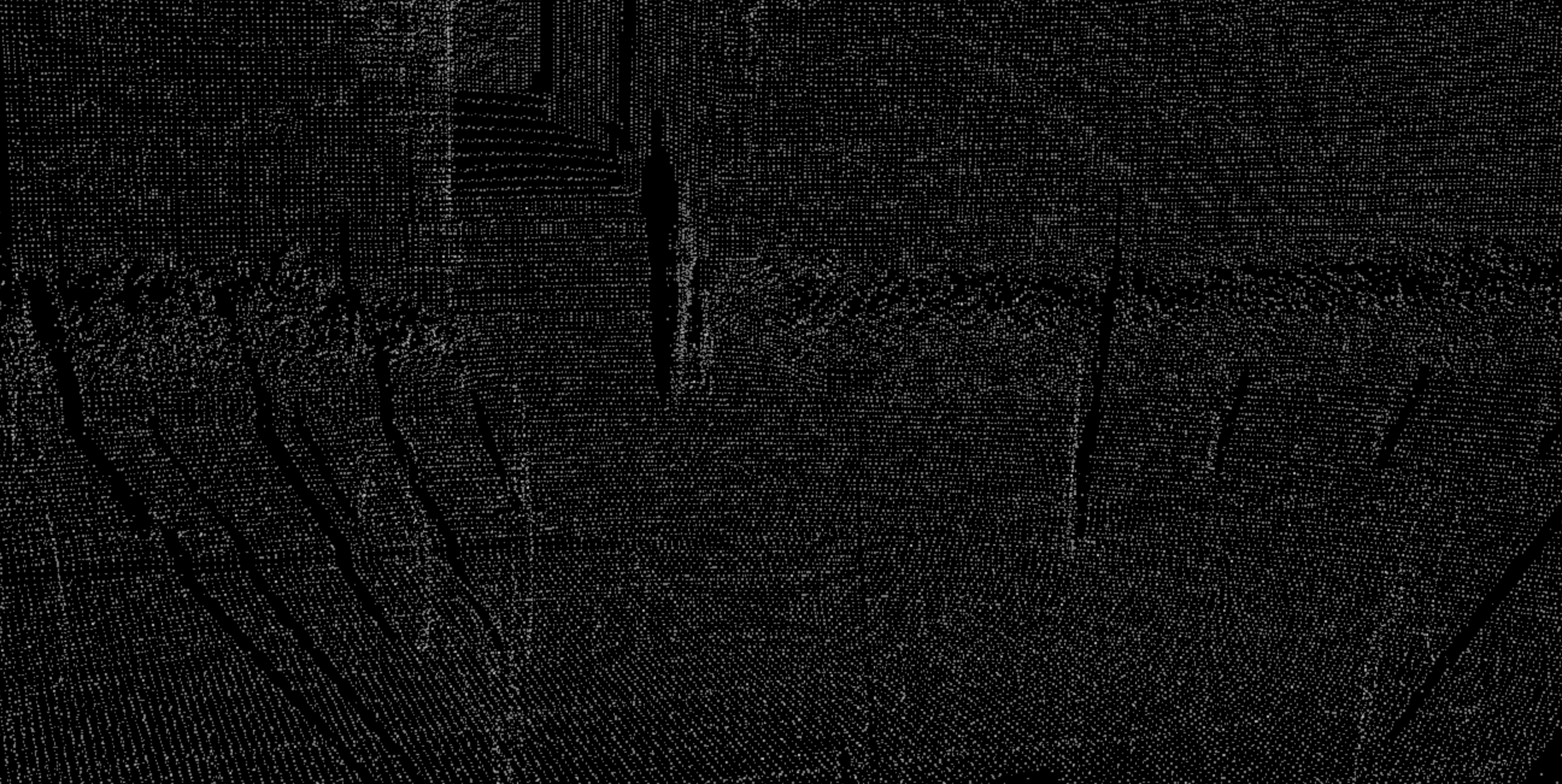 第一个缺点就是点云并不是稠密的表达,一般比较稀疏,你放大了看,会看到一个个孤立的点。它的周围是黑的,也就是没有信息。所以在空间很多位置其实没有点云,这部分的信息是缺失的。