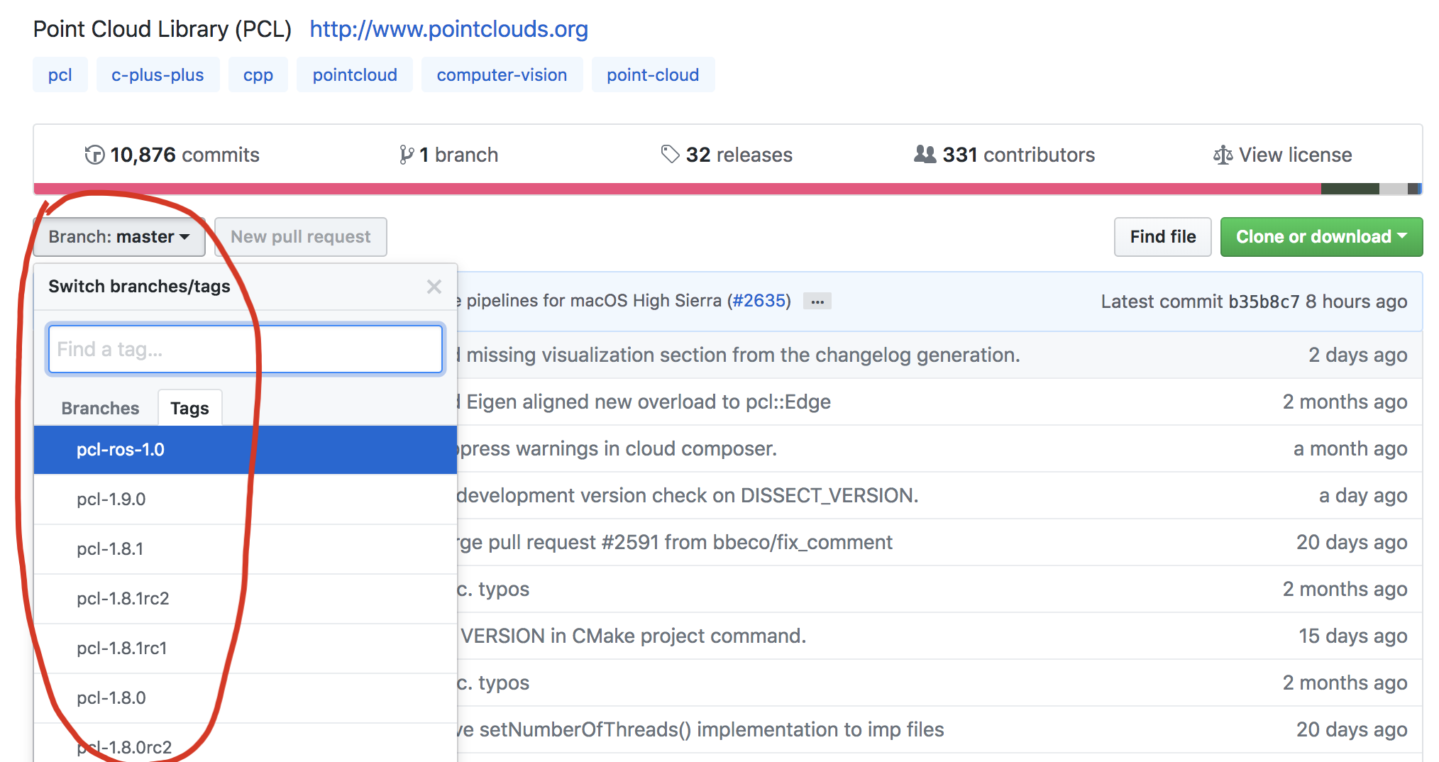 师兄:首先打开PCL GitHub的网址:https://github.com/PointCloudLibrary/pcl