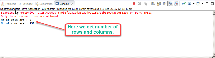- Using chrome driver we locate the web table and get total number of row using XPath ".//*[@id='leftcontainer']/table/tbody/tr/td[1]"