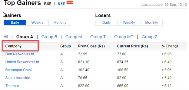 Step 1) In Chrome, Go to http://money.rediff.com/gainers/bsc/daily/groupa