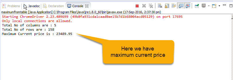 max= wd.findElement(By.xpath("html/body/div[1]/div[5]/table/tbody/tr[" + (i+1)+ "]/td[4]")).getText();