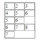 Here row number 1, 2 and 4 have 3 cells, and row number 3 has 2 cells, and row number 5 has 1 cell.
