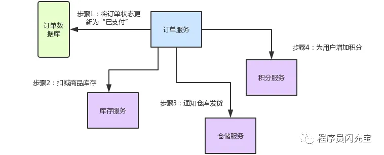 原理讲解前,先看一个最经典的业务场景,如开发一个电商网站,要实现支付订单的功能,流程如下: