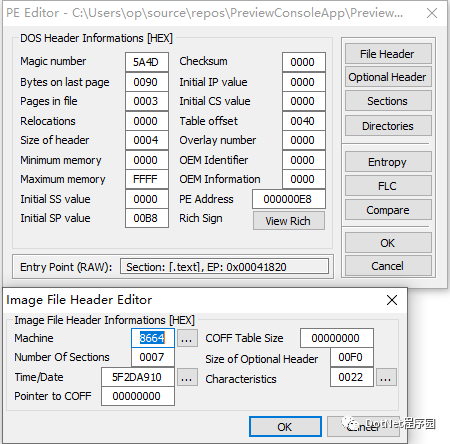 Windows下 PE Tools 读取文件头信息