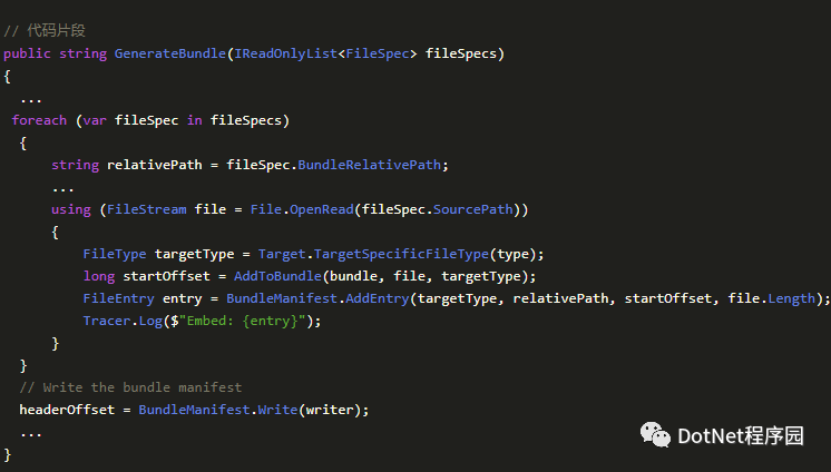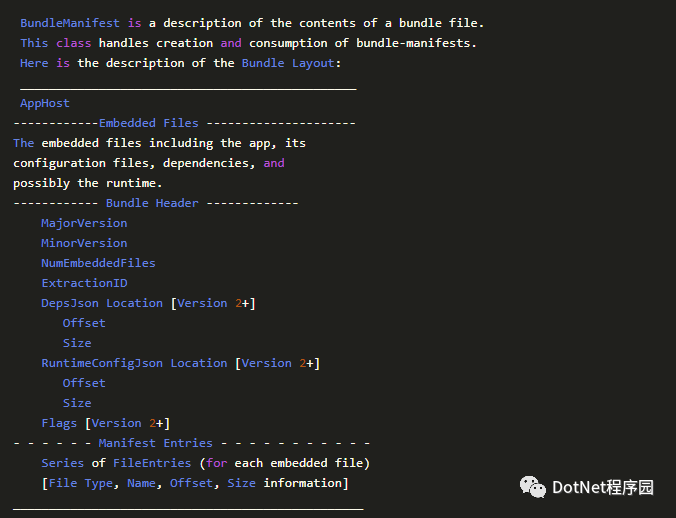 在文件 Boundle/Manifest.cs 的头部,我们看到了“单文件程序”的文件结构定义