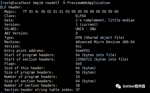 我们可以通过一些工具去查看已经打包好的文件,在 Linux 下,可以使用 readelf/objdump 等程序来获取 PreviewWebApplication 文件的信息。在 Windows 下,可以使用 PE Tools 等工具