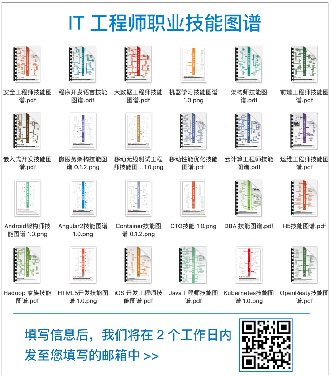 只需要扫描下图二维码填写信息,工作人员会在2个工作日内,将24张技能图谱一起发送到你填写的邮箱。